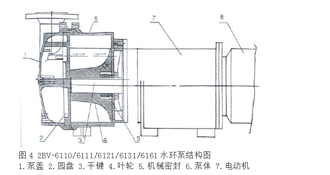 2BV型水環(huán)式真空泵的結(jié)構(gòu)如圖2、圖3,圖4所示