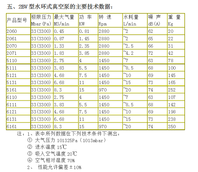 在2BV真空泵蓋上安裝有園盤,園盤上設(shè)有吸、排氣孔和柔性排氣閥片,柔性閥片的作用是當(dāng)葉輪葉片間的氣體壓力達(dá)到排氣壓力時(shí),在排氣口以前就將氣體排出,減少了因氣體壓力過(guò)大而消耗的功率、從而降低率消耗。四、2BV型水環(huán)式真空泵的產(chǎn)品說(shuō)明: