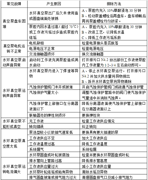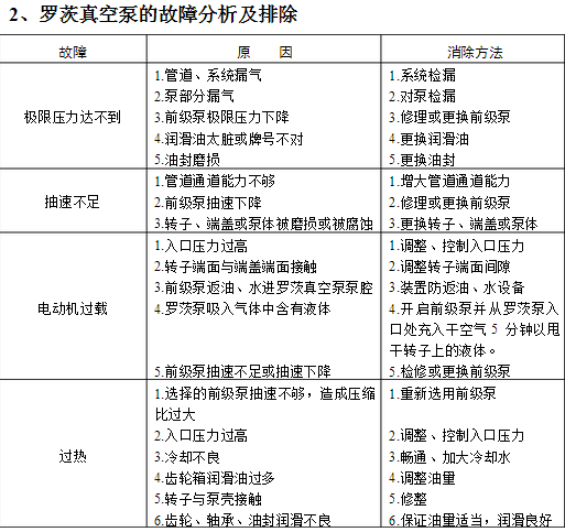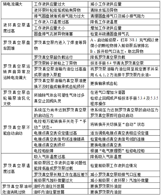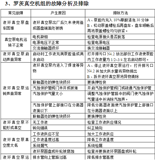 真空泵(水環泵、羅茨泵、羅茨機組等)的故障分析及排除說明