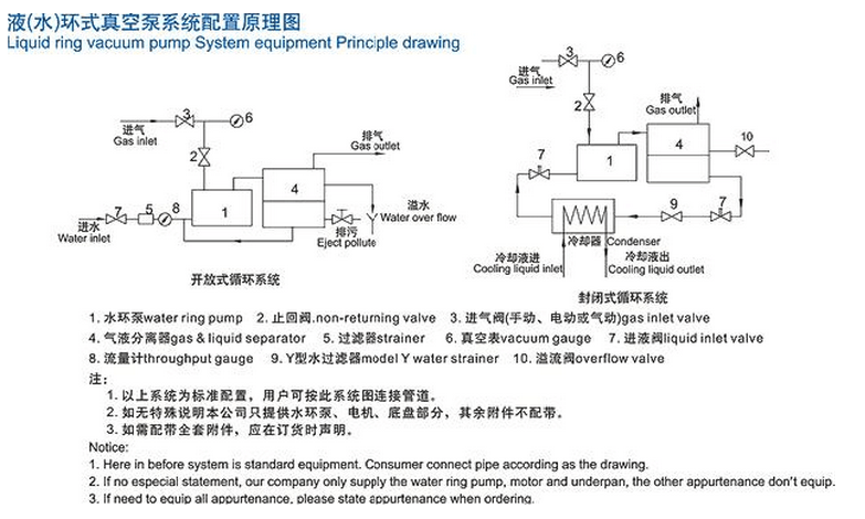 ●如排氣口壓強高于大氣壓而低于0.15MPa時,可用真空泵改裝為液環壓縮機使用。 6、系統配置型式